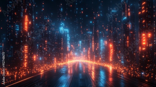 Fototapeta premium AI urban environment, digital networks, futuristic infrastructure, holographic technology