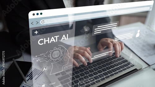 Obraz premium AI Virtual Assistant Artificial Intelligence Chatbot Controlled by Prompt Engineering for Explainable Generative AI information and LLM Deep Learning Technology for Smart Business Work Support. Muxer