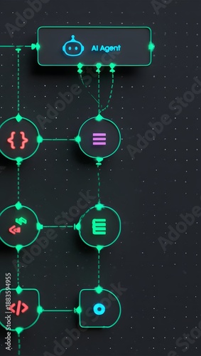 © Arnab Dey, Obraz premium AI workflow automation artificial intelligence software interface nodes triggers data tool dashboard coding icon flow process technology 3d rendering.