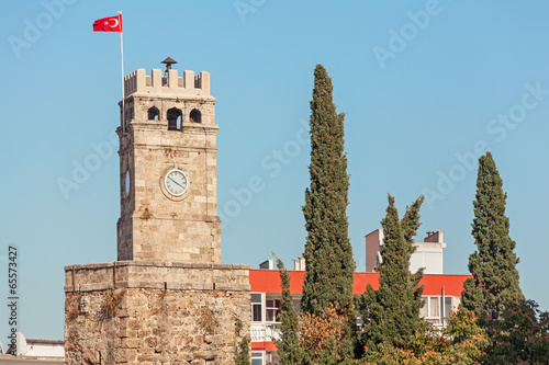 Obraz premium Aincient clock tower Saat Kulesi. Antalya, Turkey.