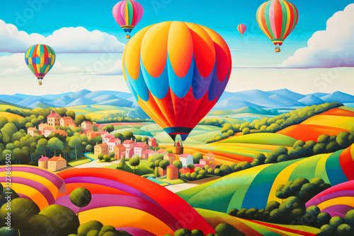 Fototapeta premium Air Ballon Countryside Concept Abstract Colorful Scenery Painting