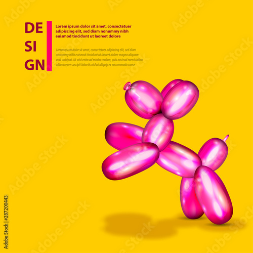 © Kapitosh, Fototapeta premium Air balloon dog. 3d realistic cute rubber toy.