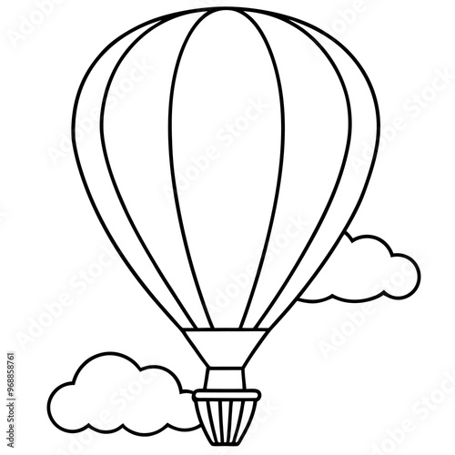 Obraz premium air balloon with clouds outline coloring book page line art drawing