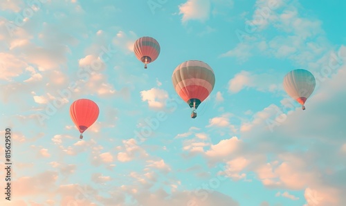 © simba kim, Obraz premium air balloons in pastel colors floating in a cloudy sky, Generative AI