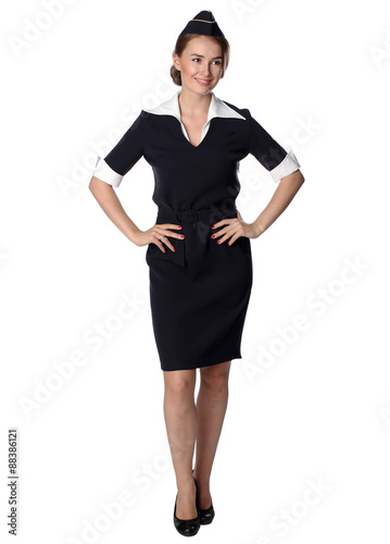 Fototapeta premium Air hostess in blue uniform.
