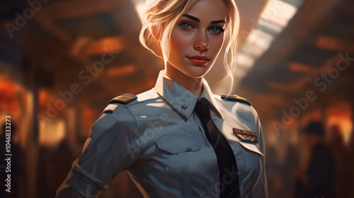 Fototapeta premium Air hostess smiling and providing a warm welcome to passengers as they board...