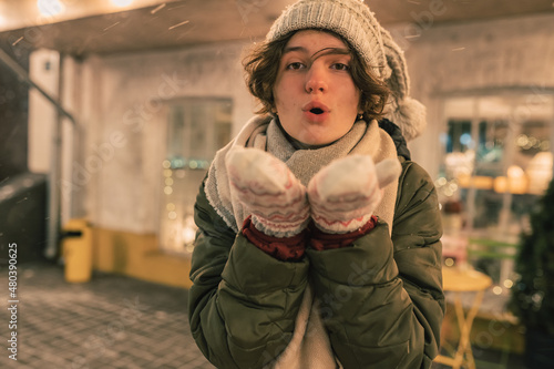 © larisikstefania, Fototapeta premium air kiss southern woman evening winter