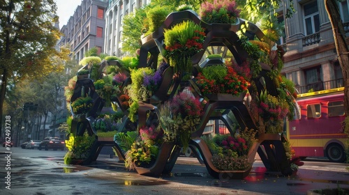Naklejka premium Air-purifying urban sculptures integrating living plants