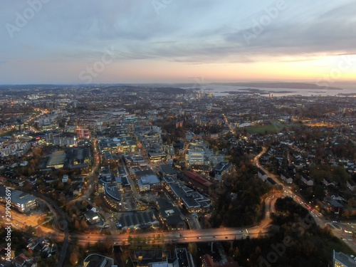 © Andrew, Obraz premium Airal photo of Oslo on sunset, view to Oslo fjord