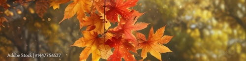 © Kathy, Fototapeta premium Airborne autumn leaves, bokeh sparkle backdrop, texture, brown, floating