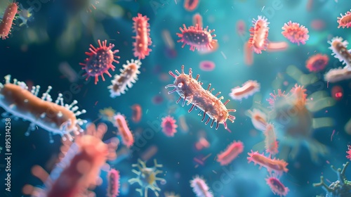 Fototapeta premium Airborne Germs Microscopic Virus and Bacteria Spreading through the Air