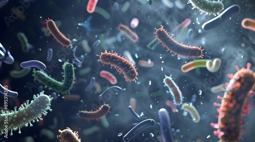 © thanarak, Fototapeta premium Airborne Microbial Threats Visualizing the Invisible Spread of Germs