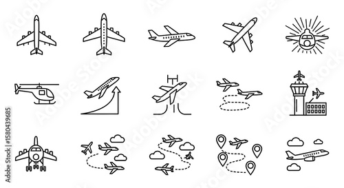 Fototapeta premium Aircraft icons set, travel and transportation concept isolated PNG with Transparent Background