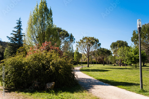Naklejka premium Aire de promenade et plan d'eau.