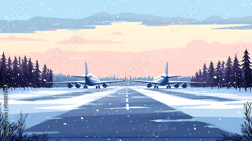 Obraz premium Airfield with planes in a snowy landscape and ample copy space for text