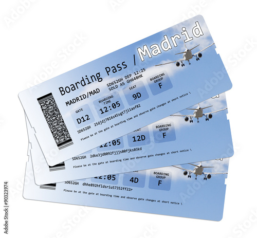© Francesco Scatena, Obraz premium Airline boarding pass tickets to Madrid isolated on white