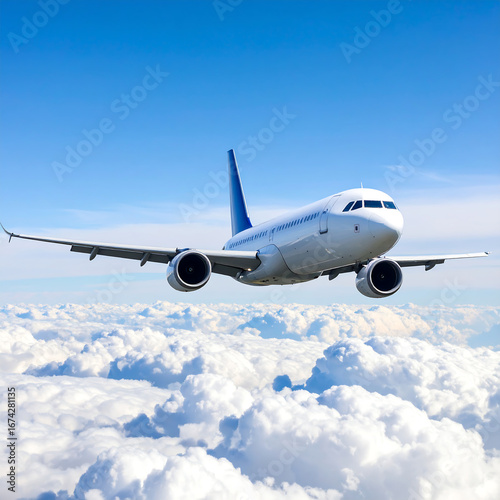 © Upik, Fototapeta premium Airplane above clouds daylight sky