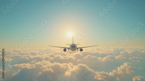 Fototapeta premium Airplane Above the Clouds at Sunset, A Journey Above the World
