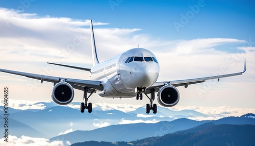 © Lancar, Obraz premium Airplane approaching mountains