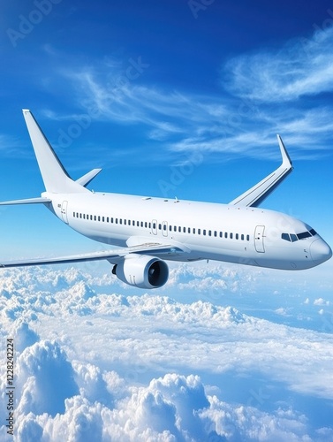 © Anat art, Fototapeta premium Airplane cruising above fluffy white clouds during a bright sunny day in the open sky. Generative AI