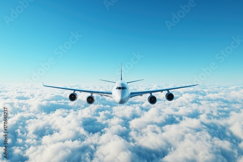 © Thomas, Fototapeta premium Airplane flying above clouds blue sky aviation travel transport illustration