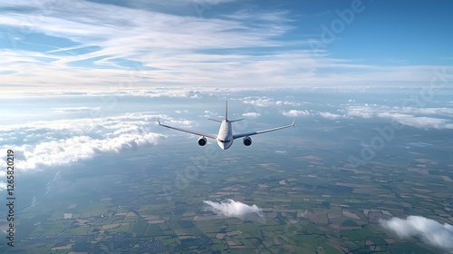 © artzone, Fototapeta premium Airplane Flying Above the Clouds and Green Fields