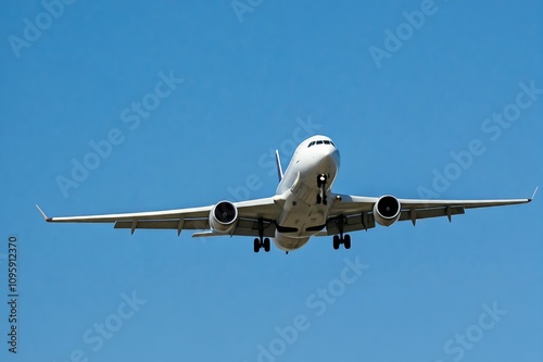 © Henhen, Fototapeta premium Airplane flying against a clear blue sky.