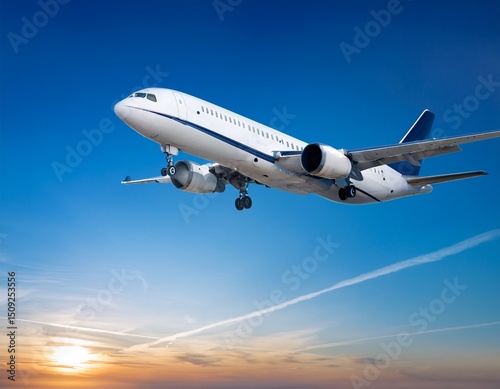 © Stella, Fototapeta premium airplane flying against a gradient blue sky perfect for travel and aviation themes