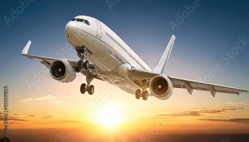 © blackdiamond67, Obraz premium Airplane flying at sunset