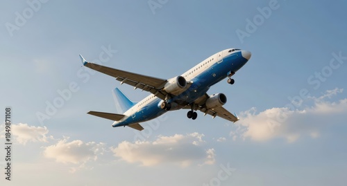 Obraz premium Airplane Flying High in Sky Commercial Aircraft Taking Off