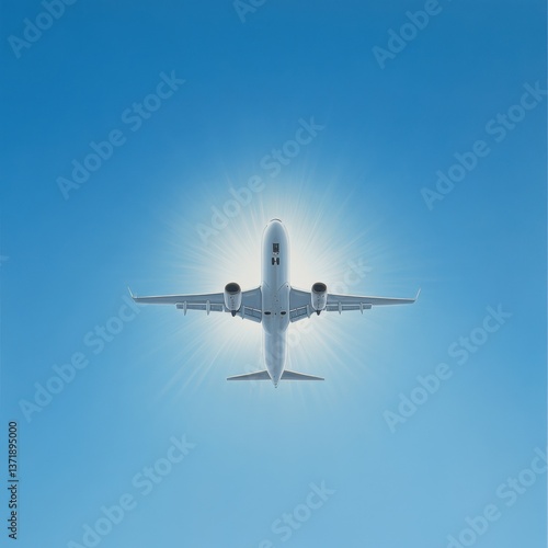 © Priya, Fototapeta premium Airplane flying in blue sky