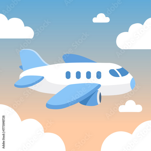 Fototapeta premium Airplane Flying in Sky with Clouds Vector Illustration