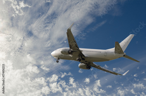 Fototapeta premium Airplane flying in sky with l clouds