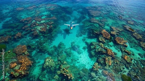 © olegganko, Fototapeta premium Airplane Flying Over Coral Reef
