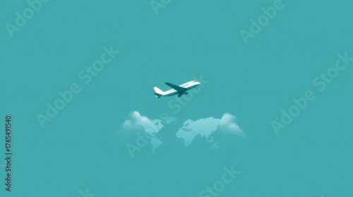 © Echt&KIreativ, Fototapeta premium Airplane flying over world map with clouds
