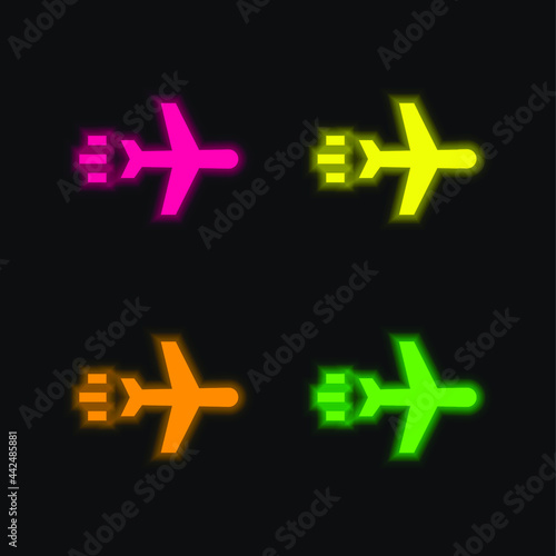 Obraz premium Airplane four color glowing neon vector icon