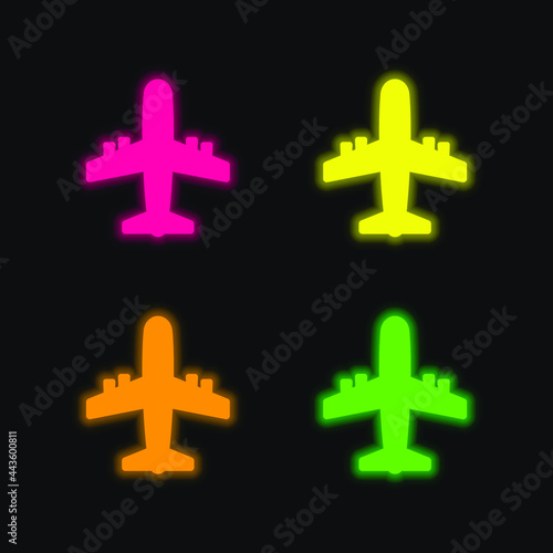 Obraz premium Airplane four color glowing neon vector icon