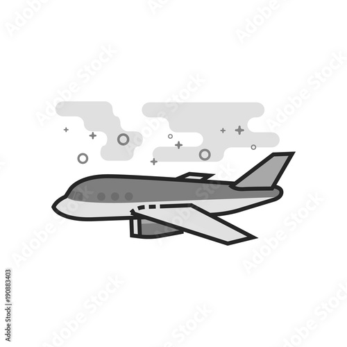 © puruan, Fototapeta premium Airplane icon in flat outlined grayscale style. Vector illustration.