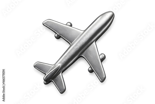 Fototapeta premium airplane icon in metallic silver, isolated on transparent background, crisp edges, travel symbol PNG