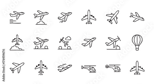 © Ruma, Fototapeta premium Airplane Icon Set Various Designs for Travel and Transportation Topics