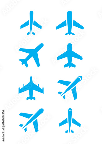 Fototapeta premium Airplane Icon Vector Set – Aircraft Silhouettes and Travel Symbols for...