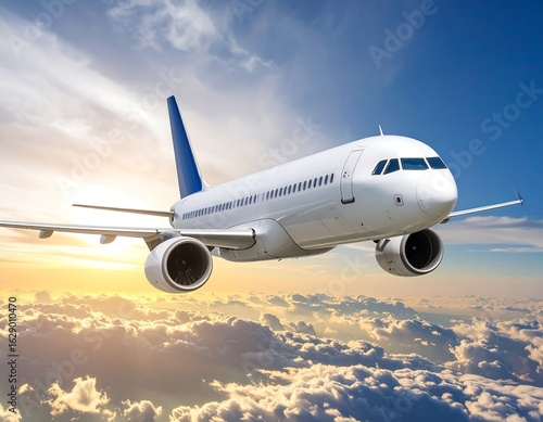 © Kirana, Obraz premium Airplane in flight above a sunset cloud layer