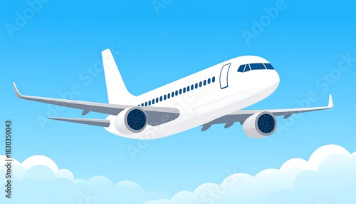 © Yes, Obraz premium Airplane in Flight Against a Blue Sky with Clouds.