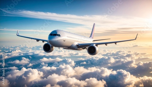 Fototapeta premium Airplane in the sky, over the cloudy sky