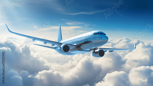 © Artworld AI, Obraz premium airplane in the sky with clouds