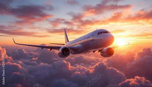 © sayy, Fototapeta premium airplane in the sunset