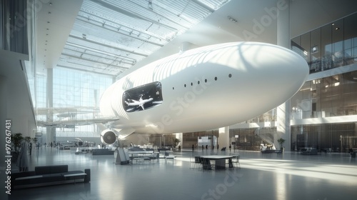 © Phatharaporn, Fototapeta premium Airplane Inside Modern Building.