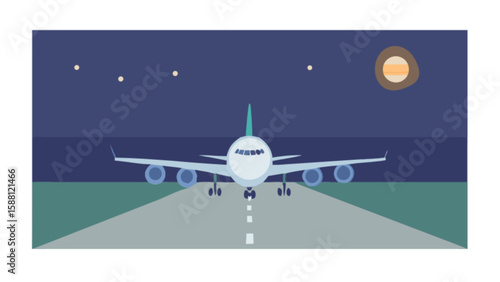 © Zubair, Naklejka premium Airplane landing at night vector illustration for travel and transportation industry graphic design and art