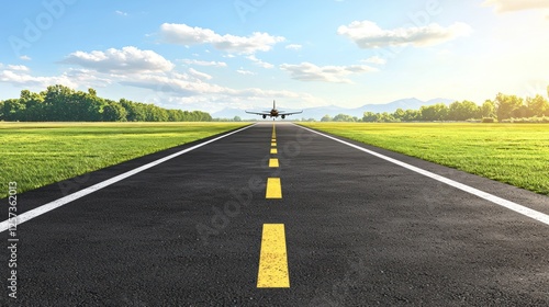 © abdul kahfi, Fototapeta premium Airplane Landing on a Runway: Journey's End
