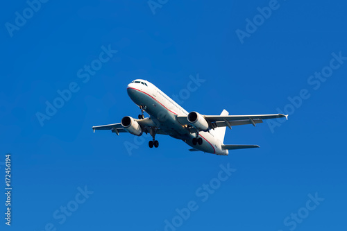 Fototapeta premium Airplane on a blue sky background